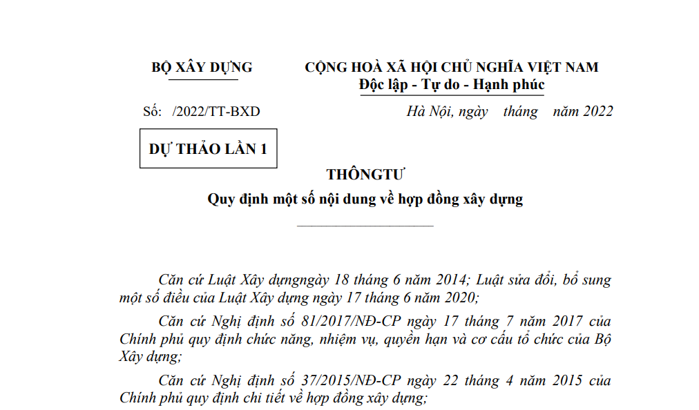 Dự thảo Thông tư quy định một số nội dung về hợp đồng xây dựng (thay thế 07, 08, 09, 30/2016/TT-BXD)