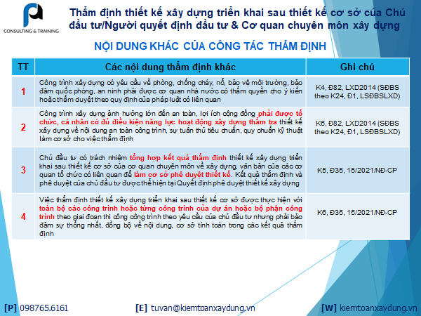 Nội dung khác của công tác thẩm định thiết kế sau thiết kế cơ sở