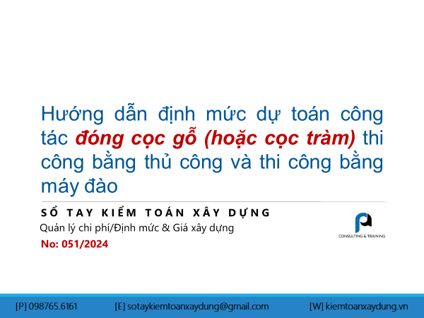 Định mức dự toán công tác đóng cọc gỗ (hoặc cọc tràm) thi công bằng thủ công và thi công bằng máy đào