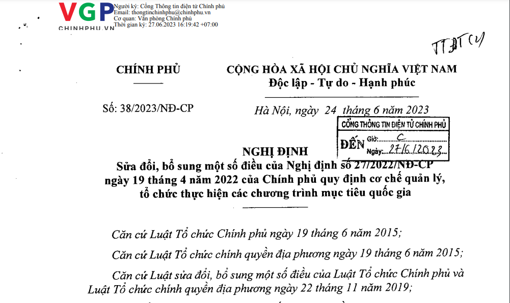 Nghị định số 38/2023/NĐ-CP sửa đổi, bổ sung một số điều của Nghị định 27/2022/NĐ-CP...