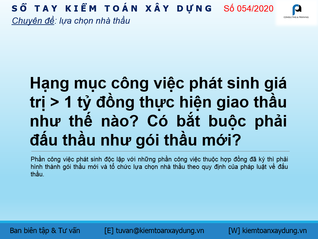 Hạng mục công việc phát sinh giá trị > 1 tỷ đồng thực hiện giao thầu như thế nào? Có bắt buộc phải đấu thầu như gói thầu mới?