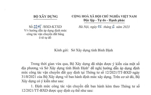Hướng dẫn áp dụng định mức công tác vận chuyển đất bằng ô tô tự đổ (mã hiệu AB.41000, AM.23000) ban hành kèm theo Thông tư số 12/2021/TT-BXD