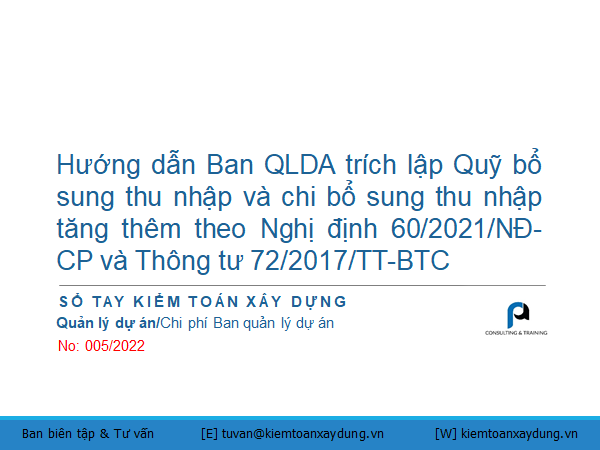 Hướng dẫn Ban QLDA trích lập Quỹ bổ sung thu nhập và chi bổ sung thu nhập tăng thêm theo Nghị định 60/2021/NĐ-CP và Thông tư 72/2017/TT-BTC