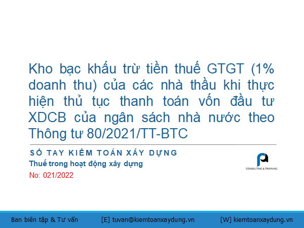 Kho bạc khấu trừ tiền thuế GTGT (1% doanh thu) của các nhà thầu khi...