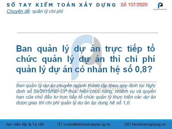 Ban quản lý dự án trực tiếp tổ chức quản lý dự án thì chi phí quản lý dự án có nhân hệ số 0,8?
