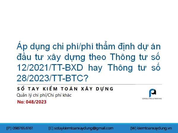 Áp dụng chi phí/phí thẩm định dự án đầu tư xây dựng theo Thông tư số 12/2021/TT-BXD của Bộ Xây dựng hay Thông tư số 28/2023/TT-BTC của Bộ Tài chính?